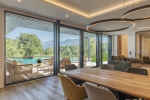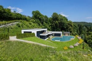 Velden am Wörthersee and Klagenfurt can be reached in 20 minutes, and the proximity to Ludmannsdorf ensures optimal supply. The region around Lake Wörthersee with Draufluss and Keutschachersee offers further attractions. This architect-designed villa is perfect for lovers of luxury, an unspoilt environment and absolute tranquillity. Experience the advantages of this region and be inspired by this unique residential and holiday villa.