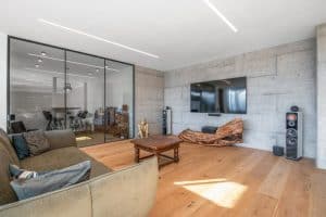 This modern lifestyle villa is located south-west of Klagenfurt am Wörthersee and was built in 2021. In total, this unique property offers a cosy ambience on approx. 350 m² of living and usable space. The light-flooded rooms are south-facing with panoramic mountain views. Access is via the upper floor, directly next to the spacious double garage. The lower floor houses the living area, kitchen, bedrooms and bathrooms, all facing south with a terrace and natural swimming pond. A wine & enjoyment room, a modern suspended wood-burning stove and an outdoor kitchen complete the picture. The upper floor offers a garage, office, workshop and technical room. A jacuzzi on the flat roof rounds off the offer. High-quality furnishings, underfloor heating, a natural swimming pond and an idyllic location make this house a family or holiday paradise south of Lake Wörthersee.