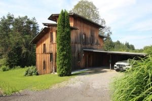 Sunny and quietly situated residential house in the timber frame construction with larch boarding in Velden on the beautiful Wörthersee; approx. 140 square meters of pure living space plus approx. 30 square meters of terrace area; the residential house was built on an approx. 2655 square meters large property which is located mainly south of the residential building; a total of 7 rooms are available here – where there are 2 master bedrooms and 2 smaller children’s rooms; one of the smaller rooms has a staircase to the attic which can be used as a gallery (currently separate living area) and has a beautiful balcony; the main room of the house is located on the first floor and includes the living area – the dining area and the kitchen – from this beautiful room you can also easily access the wooden terrace and the ideally usable private garden; a double carport is also available here as well as a tool room directly attached to it.
